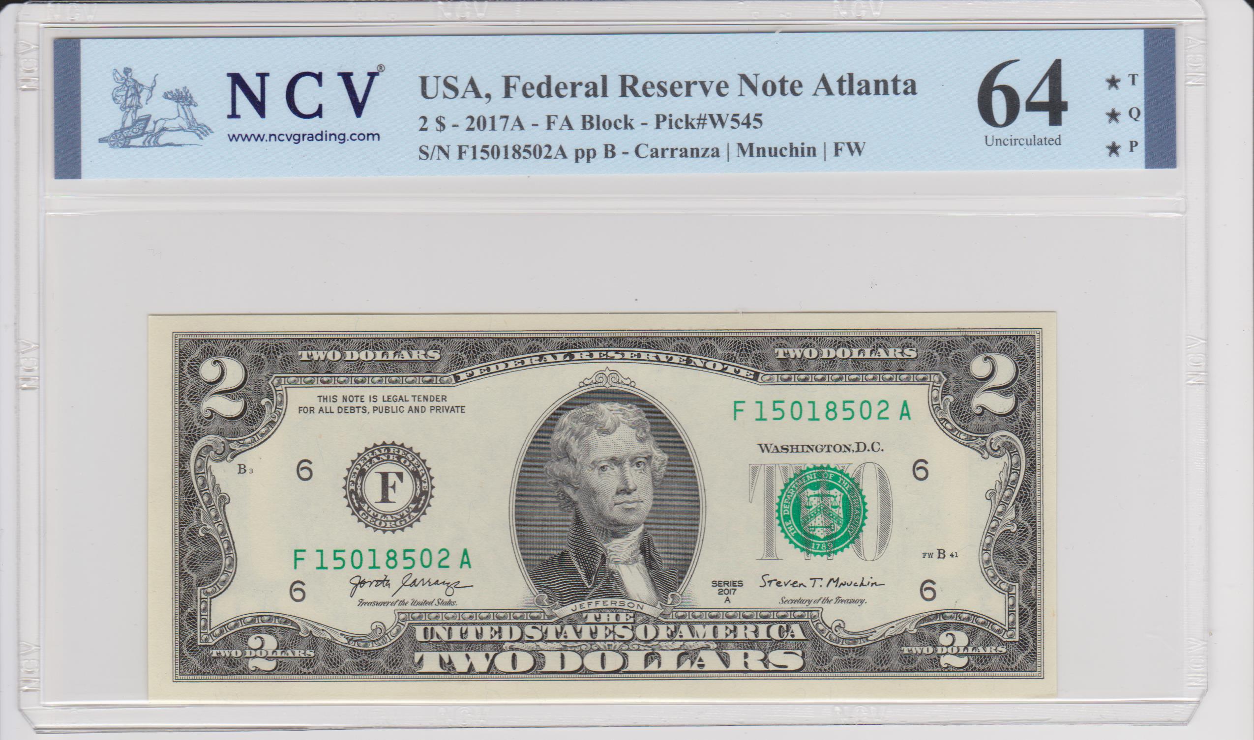 USA, Reserva Federal. Atlanta 2 $, año 2017. pick w545.