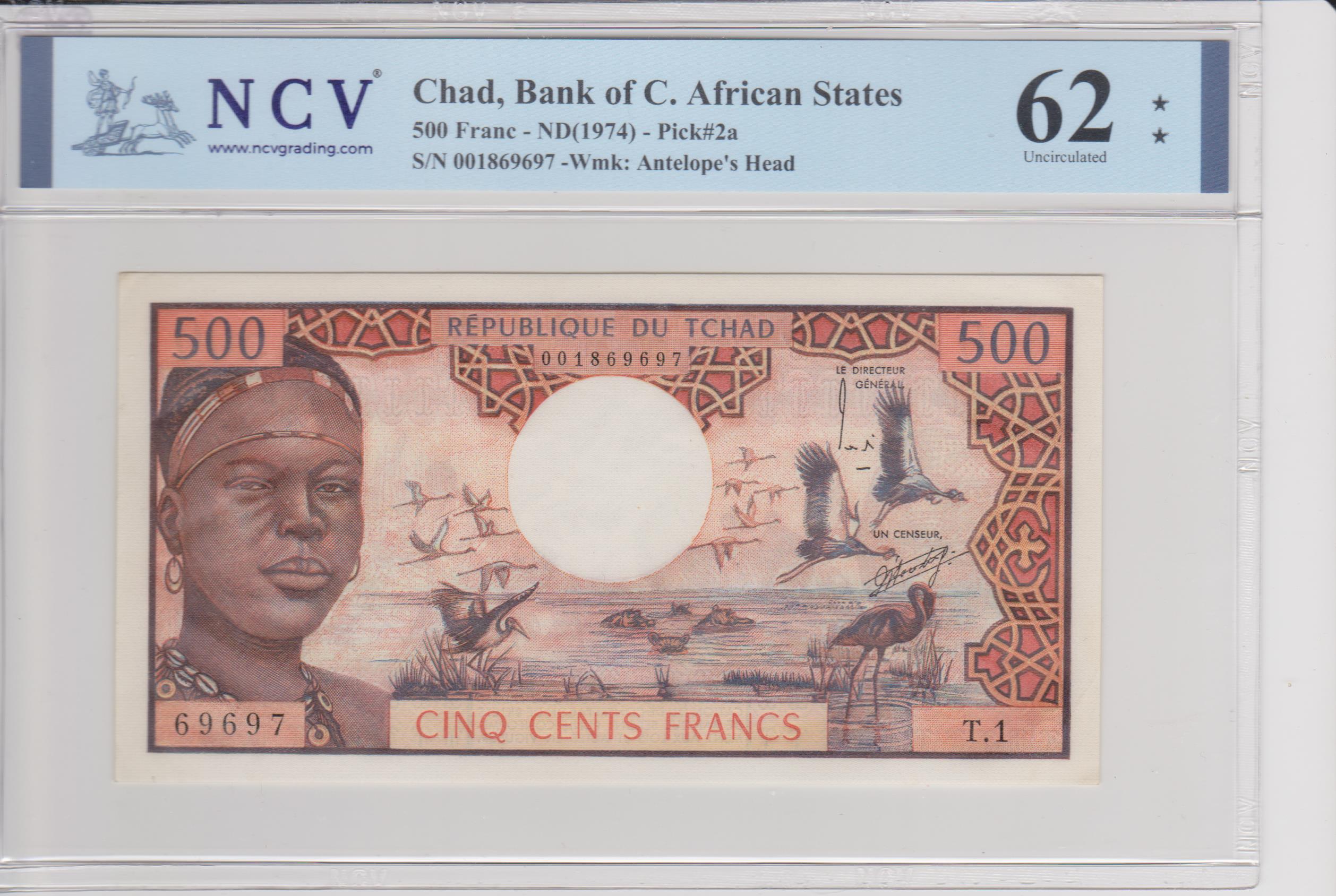 Estados Africanos, banco de Chad, 500 francos 1974, Pick 2a.