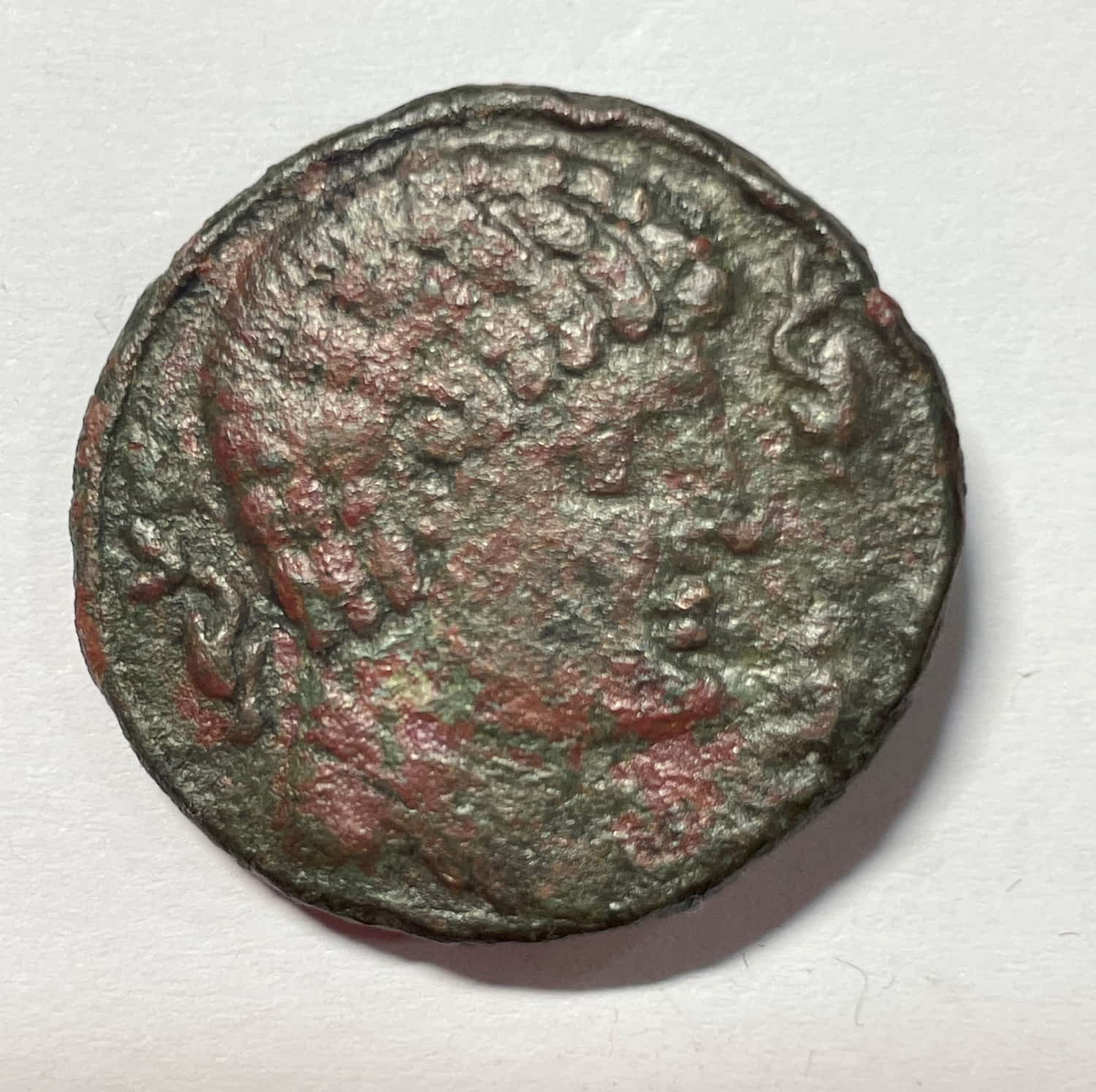 Anverso: Cabeza viril a derecha con dos delfines delante y uno detrás.
