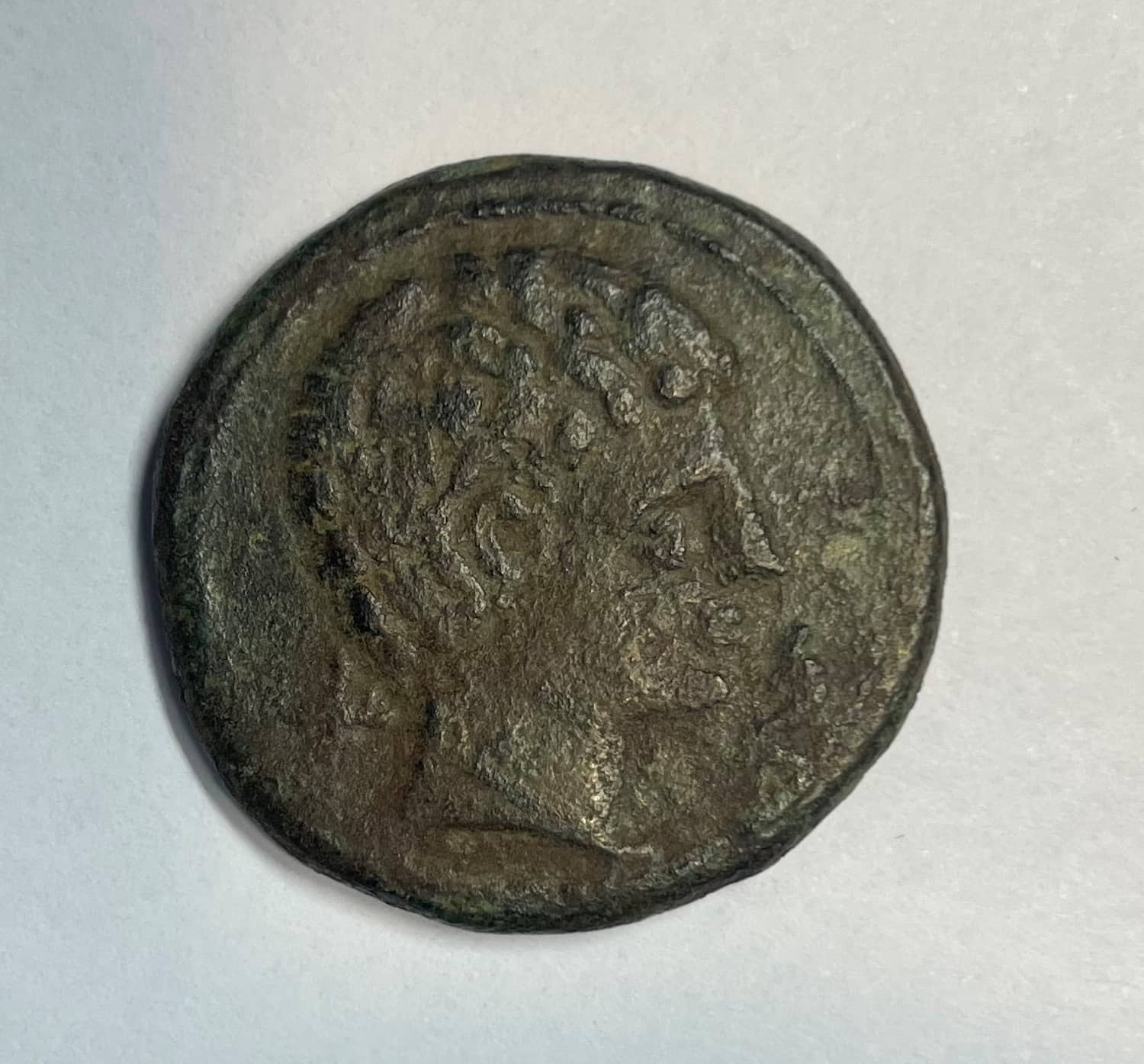 Anverso:Cabeza masculina a derecha, detrás X, delante delfín.
