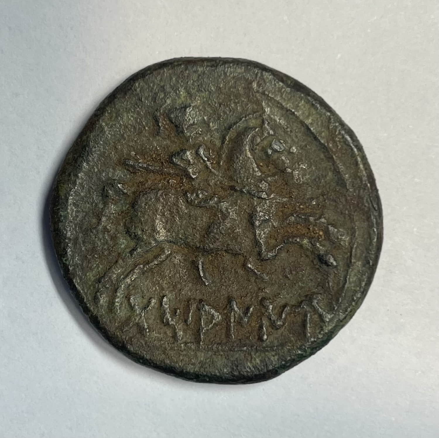 Reverso: Jinete lancero a derecha, detrás leyenda ibérica DaMANIU.