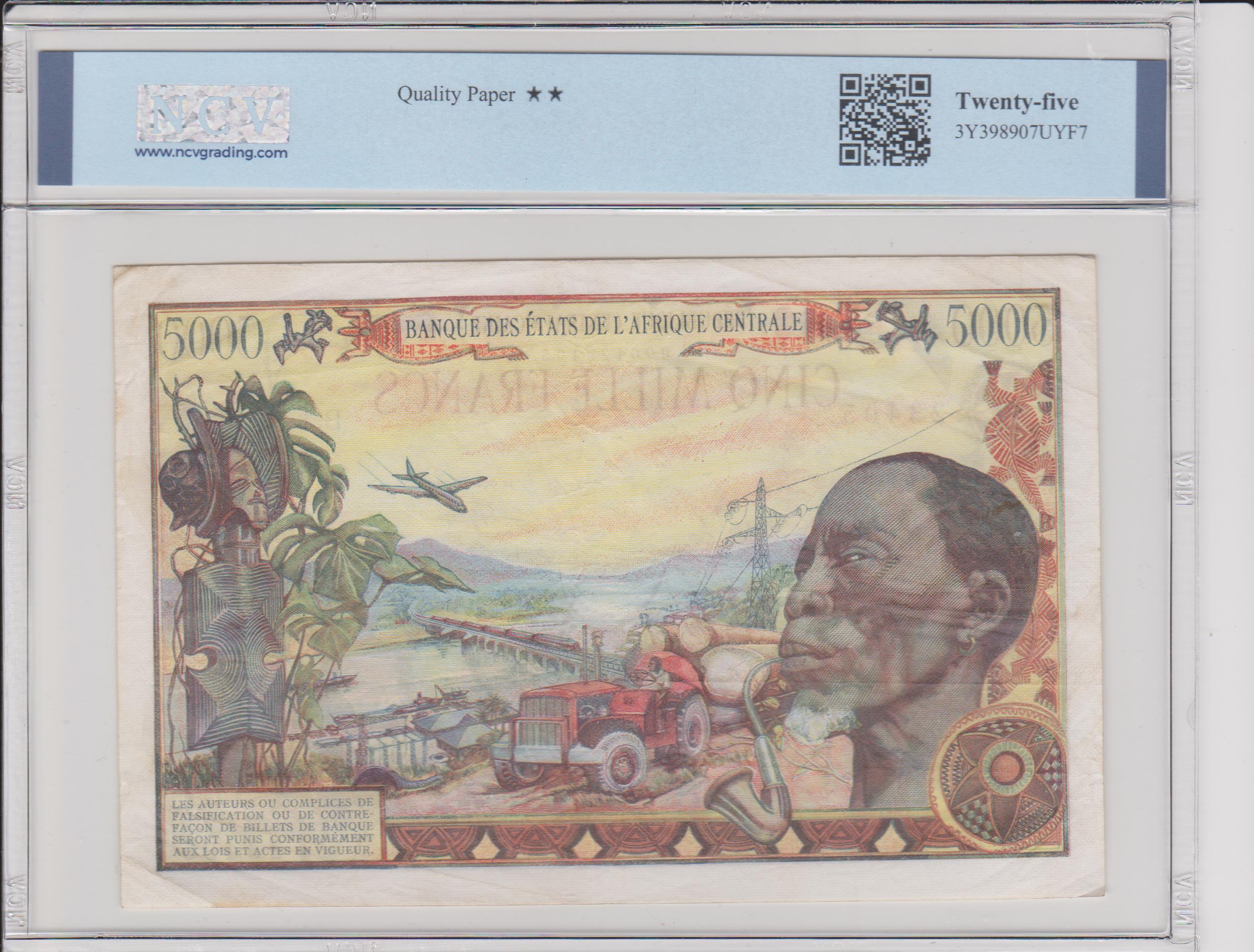 - bank notes, billetes, cinco mil francos, pick11, republicacentroafricana
